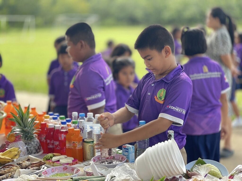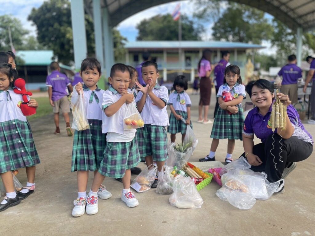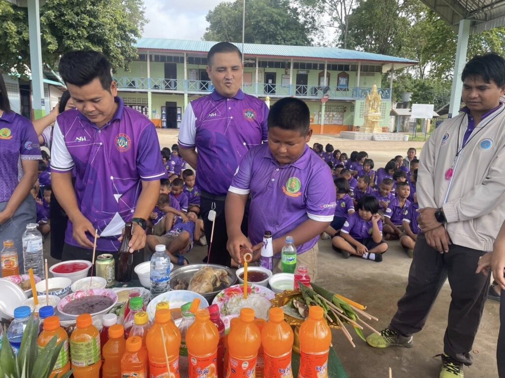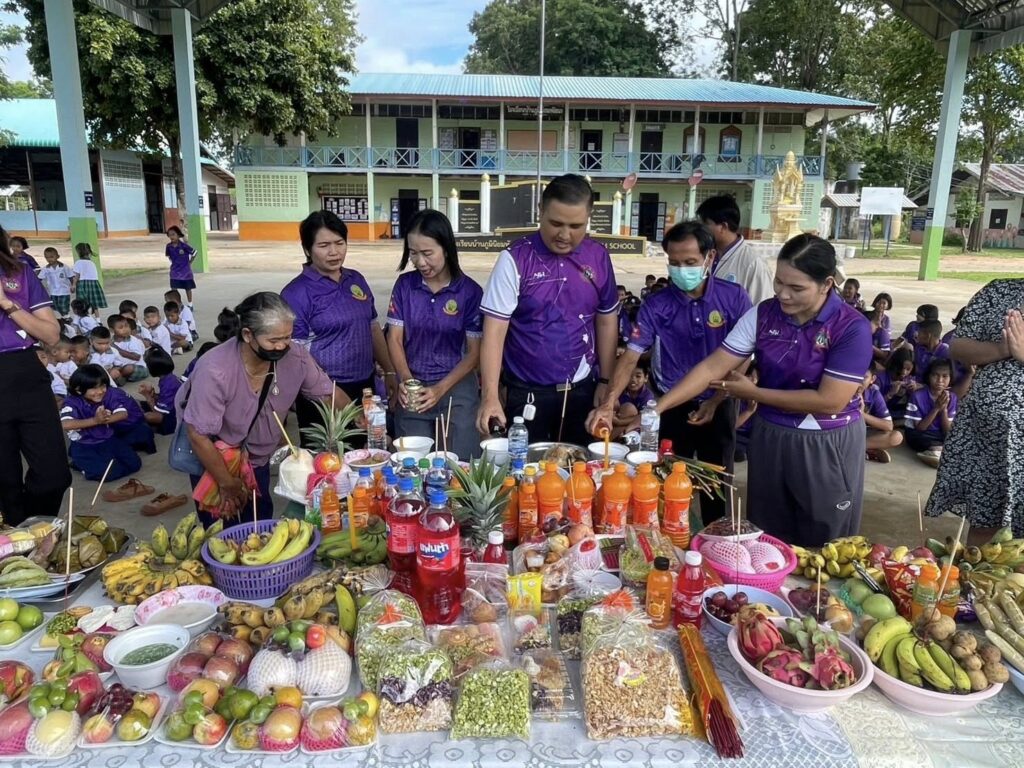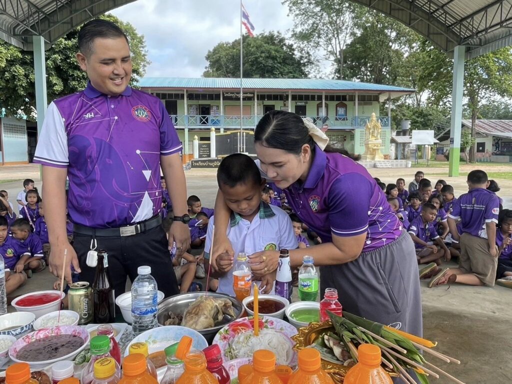 โรงเรียนบ้านภูมินิยมพัฒนา นำโดย นายก้องเทพ ตุ้มทอง คณะครู บุคลากรทางการศึกษา และนักเรียน ชั้น อนุบาล 1 – ประถมศึกษาปีที่ 6 ร่วมกิจกรรมสืบสานประเพณีท้องถิ่น ”ประเพณีแซนโฎนตา“ ซึ่งถือเป็นประเพณีโบราณอันทรงคุณค่าของชาวอีสานใต้ จังหวัดสุรินทร์ เพื่อรำลึกและแสดงความกตัญญูต่อบรรพบุรุษ เด็กๆ นักเรียนต่างช่วยกันเตรียมของ ทำขนม จัดเครื่องเซ่นไหว้ ร่วมแรงร่วมใจอย่างกระตือรือร้นและสนุกสนาน บรรยากาศเต็มไปด้วยรอยยิ้ม ความน่ารัก และความสามัคคีระหว่างครู นักเรียน และชุมชน กิจกรรมในครั้งนี้ไม่เพียงแต่ทำให้นักเรียนได้เรียนรู้การแสดงความกตัญญู หากยังได้ฝึกการทำงานร่วมกัน ฝึกความรับผิดชอบ และภาคภูมิใจในมรดกทางวัฒนธรรมที่สืบทอดจากรุ่นสู่รุ่น ![]()