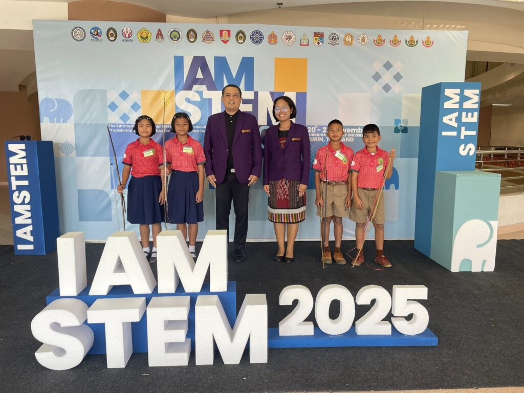 โรงเรียนบ้านภูมินิยมพัฒนา นำโดย ดร.ก้องเทพ ตุ้มทอง ผู้อำนวยการโรงเรียน พร้อมด้วย นางสาวณิชชนม์ คำนึงคง และนักเรียนชั้นประถมศึกษาปีที่ 5 ได้รับเกียรติจาก มหาวิทยาลัยราชภัฏสุรินทร์ และสำนักงานเขตพื้นที่การศึกษาประถมศึกษา สุรินทร์ เขต 3 ร่วมจัดนิทรรศการ ระดับนานาชาติ ด้านการจัดการเรียนรู้สะเต็มศึกษา ในการนำเสนองาน The 8th International Annual Meeting on STEM education (IAMSTEM) 2025: “Transformative STEAM Education for Sustainable Development” ในวันที่ 20 – 21 พฤศจิกายน 2568 ณ มหาวิทยาลัยราชภัฏสุรินทร์